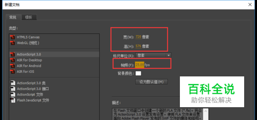 双击打开flash软件,新建一个3.0的动画项目,设置项目的大小为720*576像素,帧频为25,点击确定进行创建。