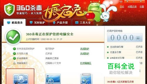 运行360杀毒程序,点击主界面中的“快速扫描”,以便快速扫描电脑中存在的病毒程序。在360杀毒软件扫描过程中,就会检测到“隐藏文件夹设置被禁用”的提示,此时耐心等待直到程序扫描结束。