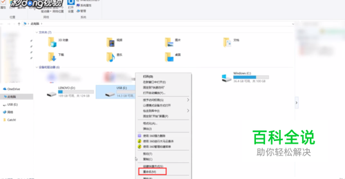 方法一:右键单击U盘盘符,点击选择“重命名”,输入名称即可。
