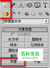这便于说明和演示,这里在透视图中新建一个茶壶。