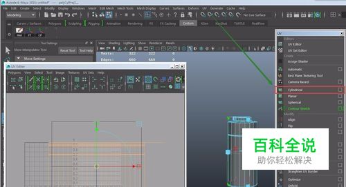 Maya在贴图后,有拉伸,这时需要将uv线展开才行;下面讲解基本的展UV