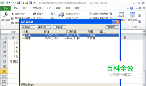 Excel2010如何定义单元格或单元格区域名称