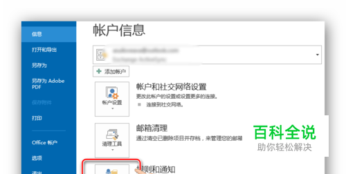 打开Outlook 2013客户端,选择文件,进入账户信息面板,点击“管理规则和通知”,进入设置对话框,如图操作。