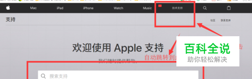 进入苹果官网后,点击技术支持,自动跳转到搜索面叶 [ 如图所示 ]