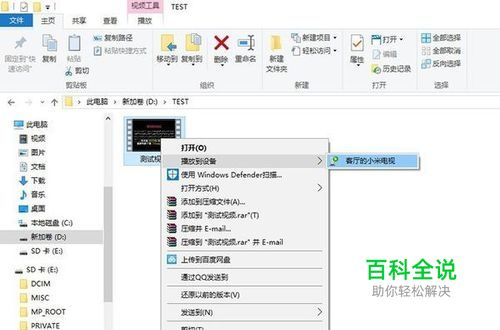 右键在“播放到设备”中选择电视的型号