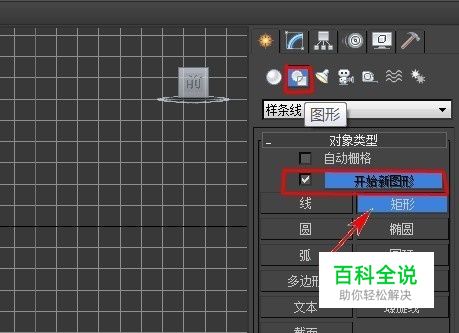 在命令面板单击“图形”创建二维“样条线”,选中“开始新图形”,选择“矩形”命令。