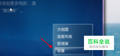打开电脑中自带的windows media center,小编是win7的系统,可以从开始菜单中找到的,打开以后再软件页面右击,选择设置