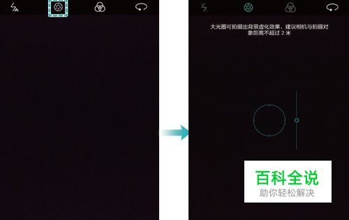 打开相机,点击顶部的大光圈图标,开启大光圈模式。