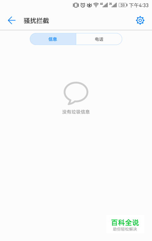 进入骚扰拦截页面之后,点击右上角的设置图标,进入到设置页面