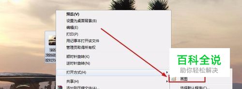 首先将原电脑桌面壁纸,截图。 截图后保存图片到桌面,单机鼠标右键,选择打开方式为画图。