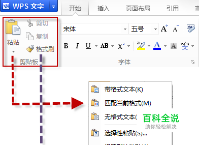 在WPS中,剪切板菜单选项里的功能是粘贴选项和格式刷。其中粘贴选项又包括以下5项内容:1.带格式文本:粘贴内容带原格式;: 2.匹配当前格式:粘贴内容格与当前使用格式相同;3.无格式文本:粘贴为无格式文本(纯文本内容);4.选择性粘贴:选择具体粘贴格式;5.设置默认粘贴:设置默认粘贴到文档的格式。