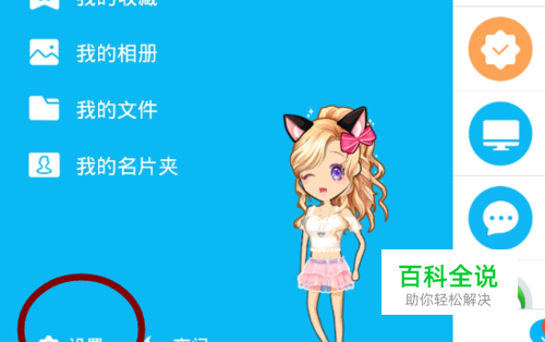 首先检查qq是否是最新版。 打开qq,主页上向右滑动,在滑出来的页面中点击“设置”。