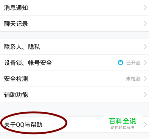 然后进入到设置页面,这里我们点击“关于qq和帮助”