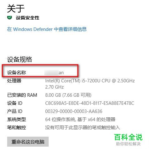 我们在日常工作生活中使用的电脑可能有改名字的需求,例如在局域网我们是通过计算机名来共享文件的,另外一些监控类的软件也需要获取到可以识别个人信息的计算机名。如下图点击“查看电脑名称”,可以查看到设备名称,该名称便是需要我们修改的计算机名。本文将介绍Windows 10操作系统如何修改计算机名。