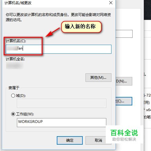 在弹出的输入框中输入新的计算机名称,其他的使用默认设置即可,然后点击确定按钮即可。