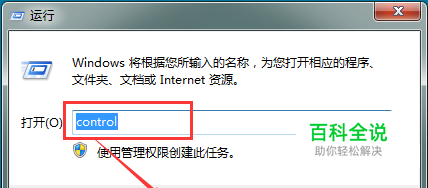 在运行的窗口,输入指令【control】,点击确定按钮,这是打开控制面板的一种方法。