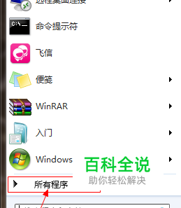 在桌面上点击”开始“菜单,然后单击”所有程序“。