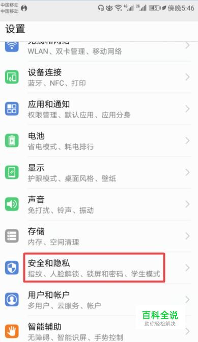 弹出的界面,我们点击安全和隐私;