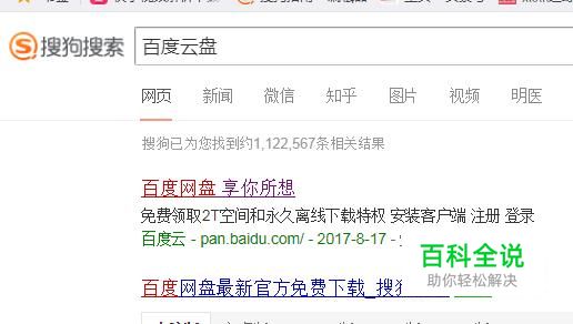 首先,在搜狗浏览器中输入百度云盘(百度网盘)并点击回车键,如下图所示。
