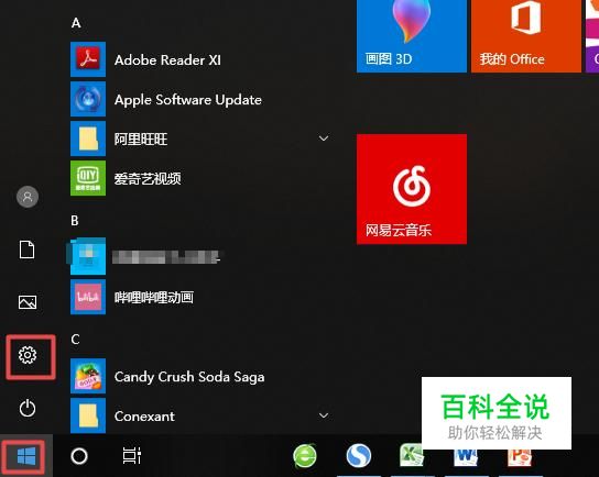 首先,我们点击电脑桌面左下角的微软按钮,弹出的界面,我们点击设置;