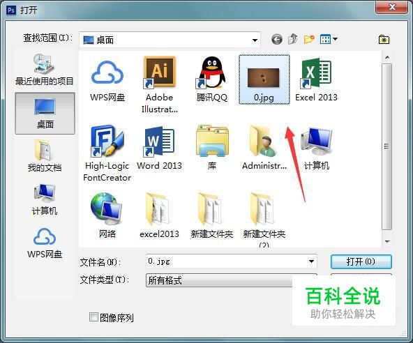 将ps打开然后按下Ctrl+O键在弹出的对话框内找到需要转换的图片,如图所示: