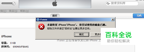 未能恢复iphone磁盘已满怎么办,iTunes提示删除回收站等信息。如果恢复自己的ios设备遇到这个系统提示怎么办?其实很简单。这个意思主要是你电脑C盘不够了,软件无法再电脑上提取出来系统文件,所以就无法恢复咯。