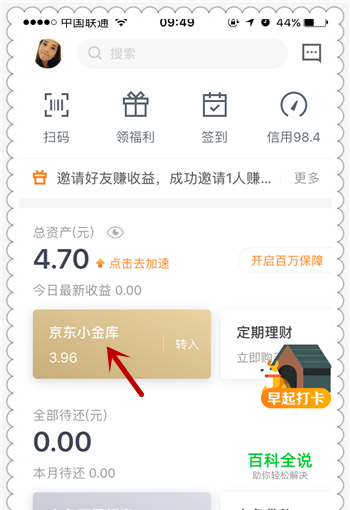首先,大家打开京东金融APP,在首页界面的时候,我们点击进入小金库的界面。