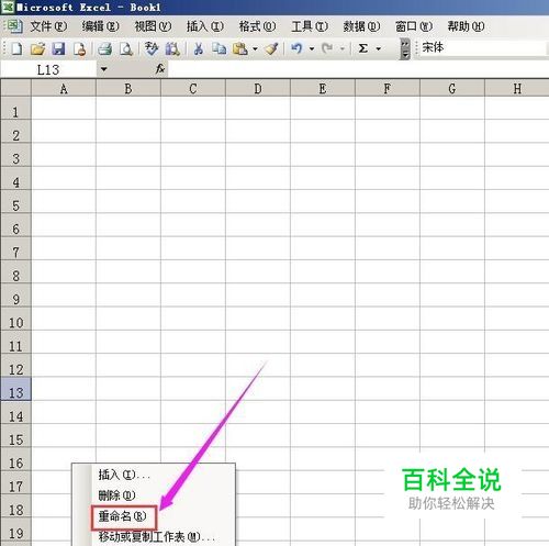 打开工作表,在工作表标签“sheet1”这里,鼠标右键点下,弹出菜单,点“重命名”。