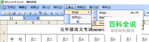 编写程序完,关闭vba界面,在语文表格里启动宏。