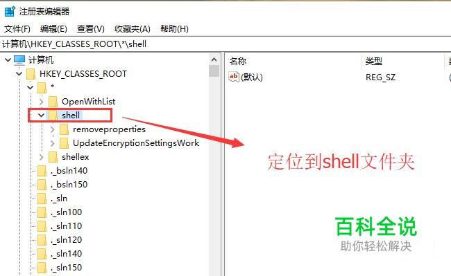 接下来在弹出的注册表界面中,我们定位到HKEY_CLASSES_ROOT下面的shell文件夹,如下图所示