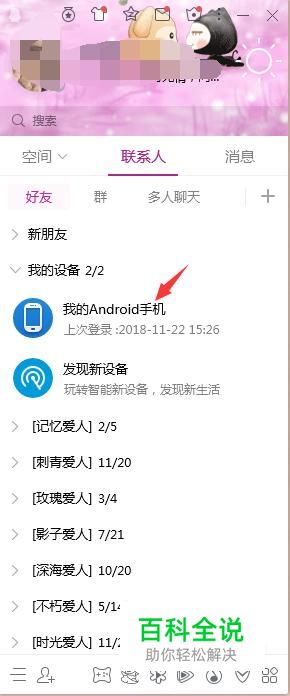 首先我们先在电脑上登录qq,然后在qq主页面点击我的设备进入到手机qq。