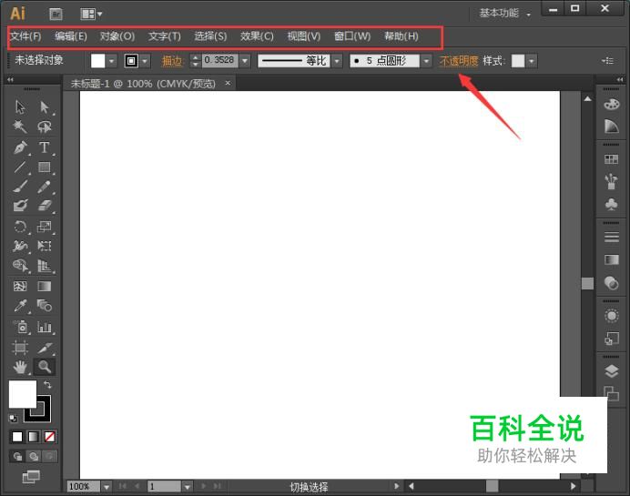 将AI这款软件打开之后,在最上面就可以找到菜单栏,在这里我们就可以选择我们需要的命令和功能,如图所示: