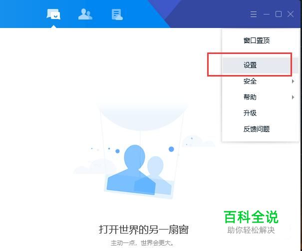 首先我们打开QQ,点击右上角的三个横线按钮,选择设置选项