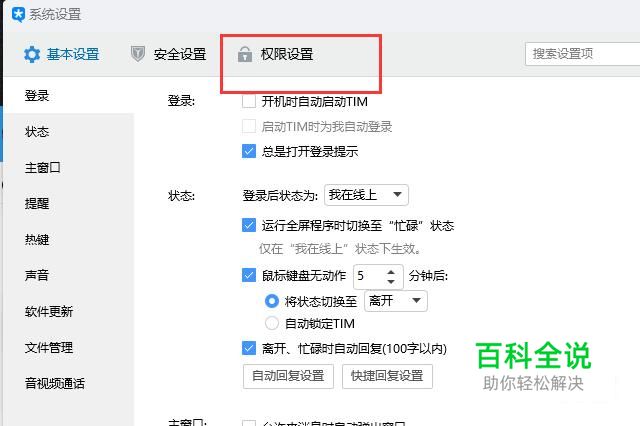 然后在弹出的设置界面中选择权限设置,如下图所示