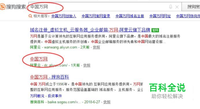 中国万网 在浏览器搜索【中国万网】,点击相关链接,如下图所示: