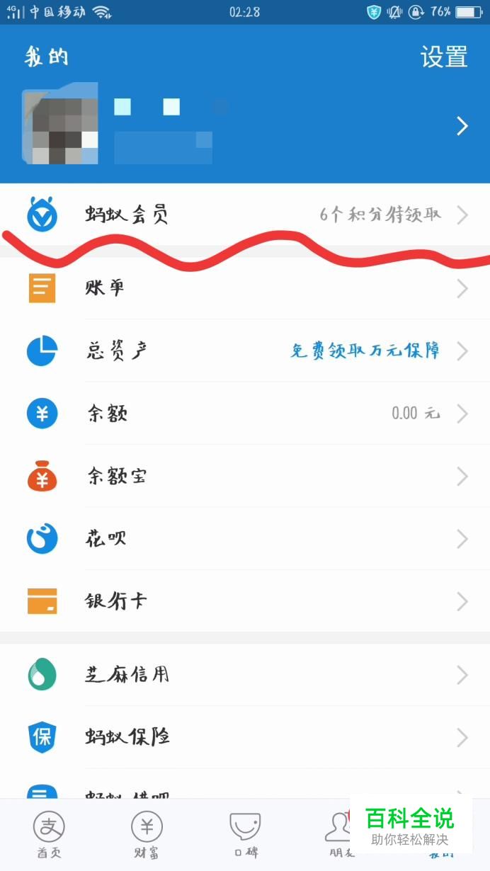 返回蚂蚁会员详细界面,点击个人会员名片。