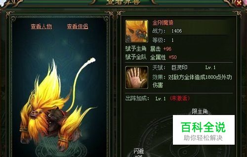 主角是内攻职业: 赤炎金猊,异兽全内攻攻击,属性成长有52,阵型中有生命、命中加成,1号位生命加成可以放置异士,搭配主角和2号位命中加成,是追求稳健人士的选择。