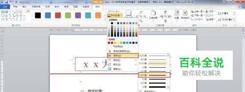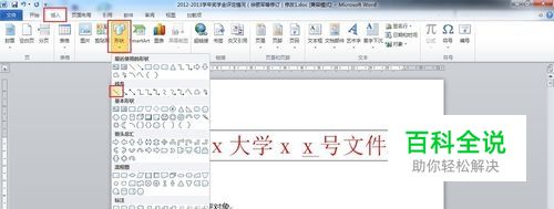 四、红线制作 (1)选择“插入”|“形状”中的直线工具,按住SHIFT键,用鼠标从左到右拖出一条直线。