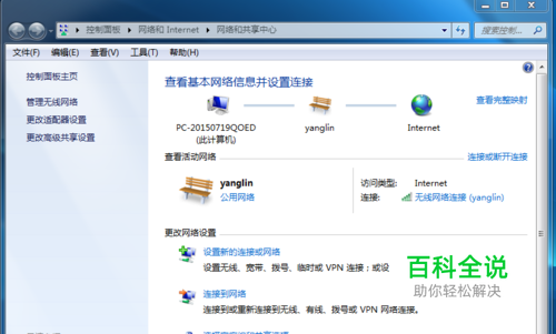 打开网络共享中心后,点击更改网络适配器设置