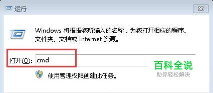 首先,我们在被远程的windows电脑上使用快捷键win+R打开“运行”窗口。在“运行”窗口中输入cmd打开“命令提示符”窗口。