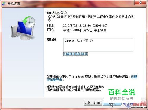 手动创建还原点 在开启分区的“系统还原”后,它系统分区会间隔性地对系统建立还原点(默认一天一次),或者在系统安装应用软件和驱动程序时建立还原点。而对于其他非系统分区只开启了“卷影副本”功能,则当对该分区中的文件进行修改时,就会创建该文件的卷影副本。需要说明的是:当针对某个分区设置保护后,首先需要针对该分区创建还原点,这样在进行系统还原或者文件恢复时系统还原才可用。创建还原点的方法非常简单,点击“系统保护”标签页中的“创建”按钮就会弹出“创建”还原点向导,依照向导可完成还原点的创建。