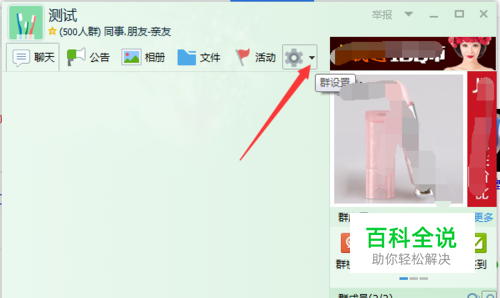 进行选择一个qq群组,进入到qq群的聊天的窗口中,然后进行点击“设置”的按钮。