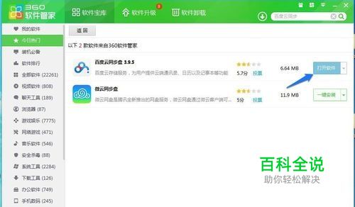 前往360软件管家下载”百度云同步盘“。如图所示。