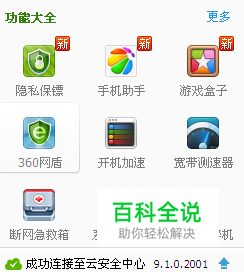 在某安全卫士的功能大全中有一个360网盾小工具。