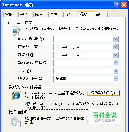 在IE中设置浏览器为默认浏览器