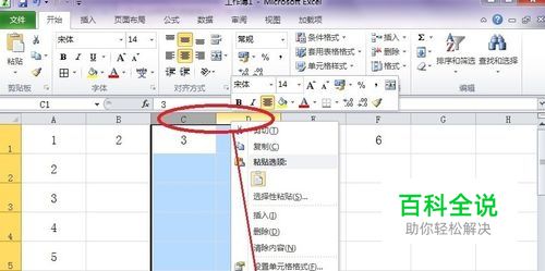 在工作表中用鼠标选定我们需要隐藏起来的列标,然后点击右键,在弹出的右键菜单中选择 ”隐藏“。