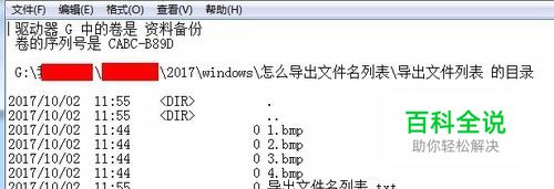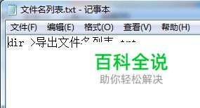 在“文件名列表.txt”中输入“dir >导出文件名列表.txt”并保存后关闭。