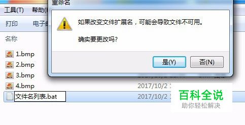 修改“文件名列表.txt”为“文件名列表.bat”,保存后退出。