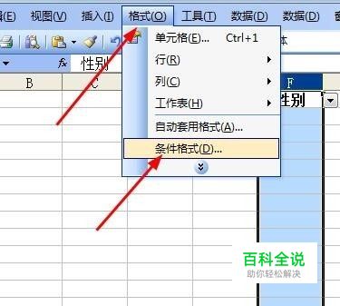 选中设置了下拉框的一列表格,依次点击 格式>>条件格式