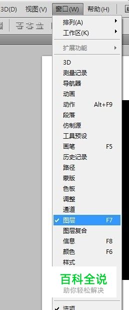 图层突然会不见,不知去哪里寻找?其实在菜单栏中的 窗口— 图层可以找到,也可以通过快捷键找到 F7。